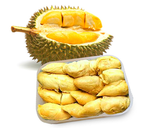 Durian Kupas fresh dengan rasa yang manis dan khas, tekstur yang lembut, dan beraroma kuat