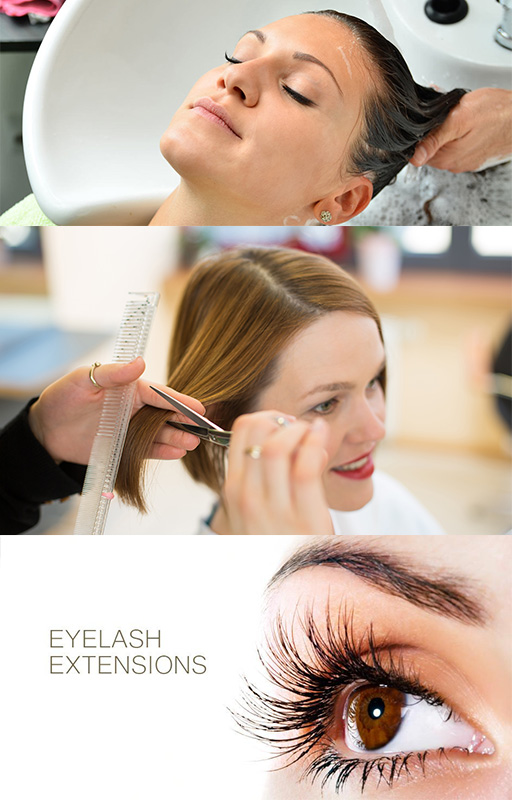 Hairspa, Haircut , Blow, Creambath, Menicure + Pedicure, Eyelash Extension dll