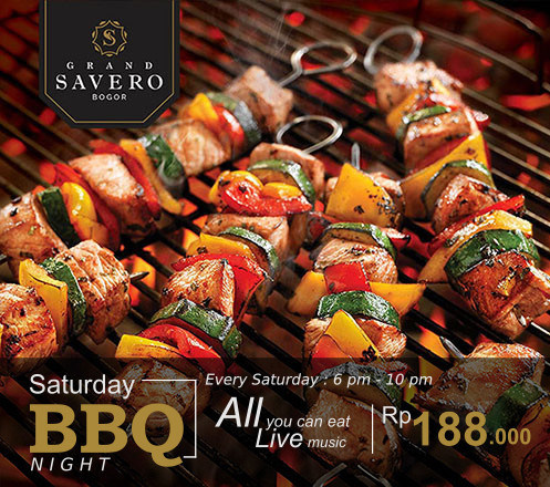 Grand Savero yang berlokasi di Bogor dengan suasana yang asri dan modern menawarkan promo All You Can Eat Saturday BBQ Night. Grand Savero - Bogor bisa menjadi pilihan Anda untuk menghabiskan waktu bersama keluarga dan juga kerabat terdekat sambil BBQ.